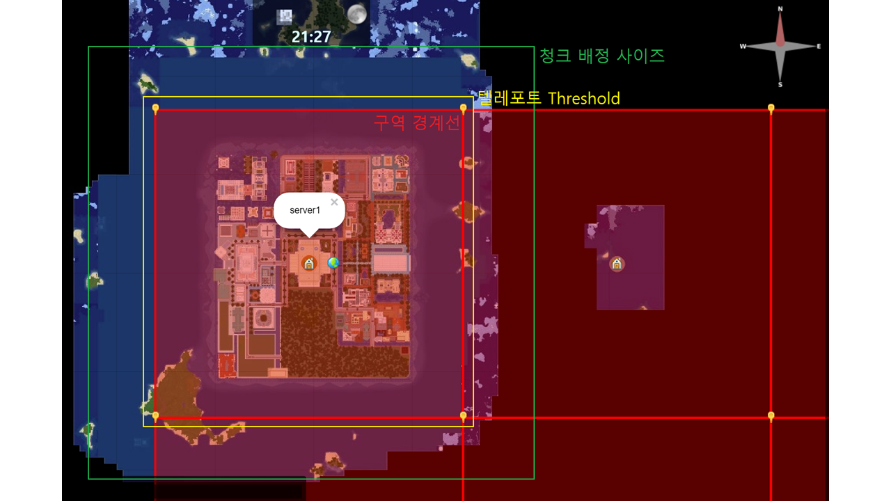 - 구역경계로 부터 10블럭이상을 나가면 플레이어의 텔레포트 허용
