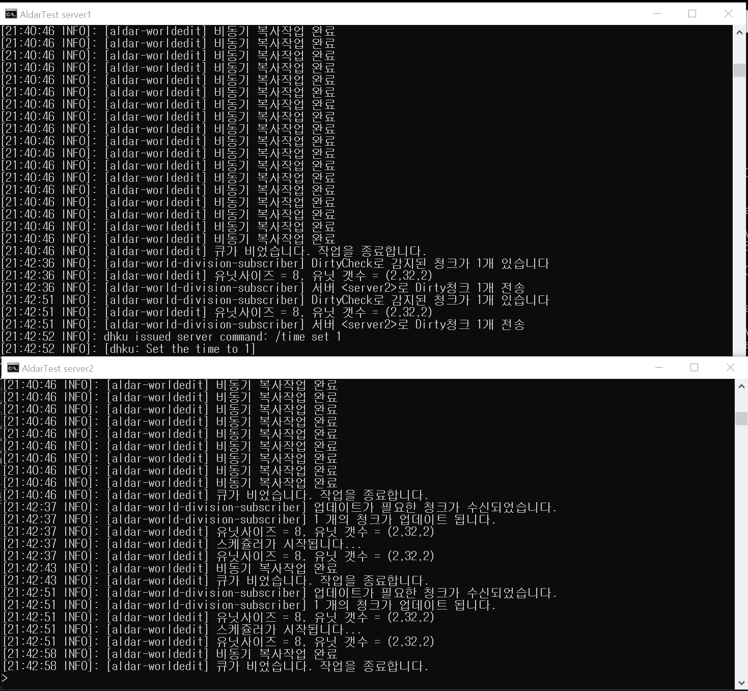 - 15초마다 지형의 수정을 감지해서 해당 지형과 경계선에 있는 서버들에게 수정된 청크를 보냄